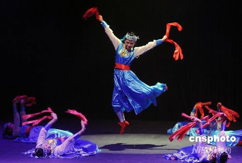 圖為加州大學(xué)洛杉磯分校的“中國(guó)民族舞蹈社”表演舞蹈“蒙古人”。中新社發(fā) 張煒 攝