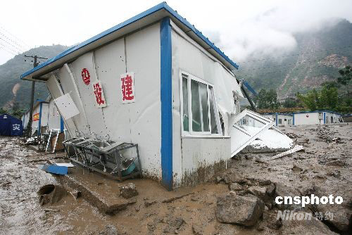 9月23日至24日,四川地震災(zāi)區(qū)北川羌族自治縣連降暴雨,遭泥石流襲擊,一批基礎(chǔ)設(shè)施被毀,唐家山堰塞湖也因泥石流堵塞泄洪槽,水位已上升5米。今日上午,北川擂鼓鎮(zhèn)受災(zāi)群眾目前已安全轉(zhuǎn)移。傷亡失蹤人數(shù)還在統(tǒng)計(jì)中。中新社發(fā) 蒲滔 攝