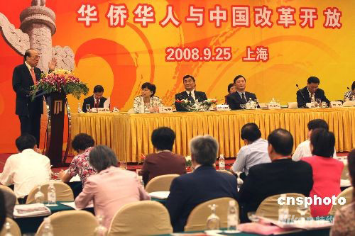 9月25日,中國僑聯(lián)主辦的“華僑華人與中國改革開放紀(jì)念大會”在上海舉行,來自20多個國家和地區(qū)的300余名僑領(lǐng)、華商共聚一堂,圍繞“華僑華人與中國改革開放”主題,共敘中國改革開放30年取得的偉大成果。中新社發(fā) 史利 攝