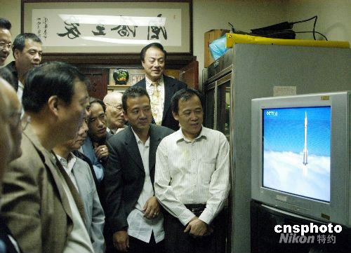 中國神州七號載人飛船發(fā)射成功,身在美國的華人華僑歡欣鼓舞,信心大振。紐約福建同鄉(xiāng)會(huì)重復(fù)播放“神七”升空的電視機(jī)前,總是站滿了觀看節(jié)目的僑胞。中新社發(fā) 魏晞 攝