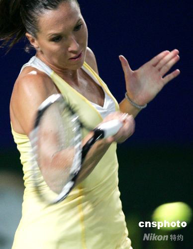 9月26日,在2008中國網(wǎng)球公開賽女子單打四分之一決賽中,塞爾維亞選手揚(yáng)科維奇以2比0戰(zhàn)勝斯洛伐克選手漢圖楚娃,晉級四強(qiáng)。中新社發(fā) 富田 攝