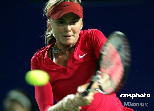 斯洛伐克美女選手漢圖楚娃以0比2不敵塞爾維亞選手揚(yáng)科維奇,無(wú)緣四強(qiáng)。中新社發(fā) 富田 攝