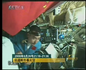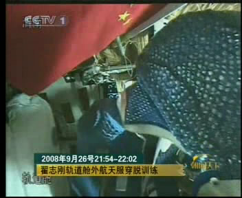 9月26日晚至27日凌晨,神七航天員在艙內(nèi)進(jìn)行各種活動(dòng)。