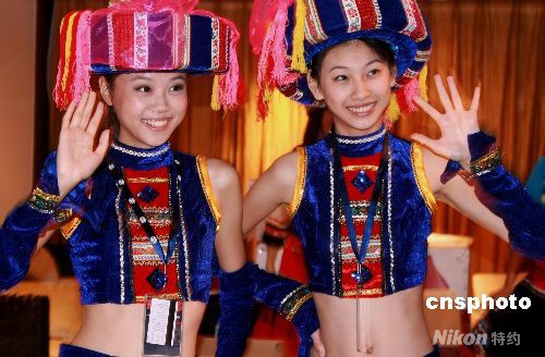 近日,第八屆中國(guó)職業(yè)模特選拔大賽在廣東惠州舉行,來(lái)自20個(gè)分賽區(qū)的40名選手在金海灣喜來(lái)登酒店展示風(fēng)采,圖為民族服飾表演。中新社發(fā) 錢興強(qiáng) 攝