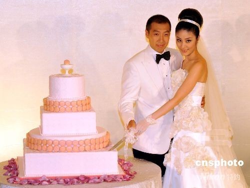 圖為陳慧琳與夫婿劉建浩在婚禮上切蛋糕。中新社發(fā) 鄧慶樂 攝