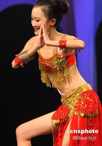 10月8日晚,2008亞洲小姐京津地區(qū)選拔賽在天津舉行。圖為參賽佳麗展示才藝。中新社發(fā) 錢興強 攝