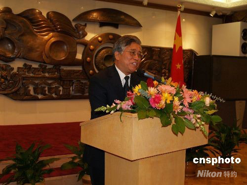 當(dāng)?shù)貢r(shí)間10月8日,中國駐洛杉磯總領(lǐng)館舉行”紀(jì)念中美建交30周年茶話會”,中領(lǐng)館總領(lǐng)事張?jiān)圃跁辖榻B中國改革開放30年來的巨大變化。 中新社發(fā) 盧威 攝