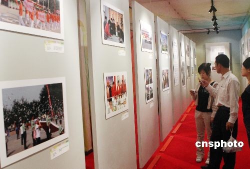 圖為大紅門發(fā)展成就圖片展吸引參觀者。中新社發(fā) 錢興強 攝