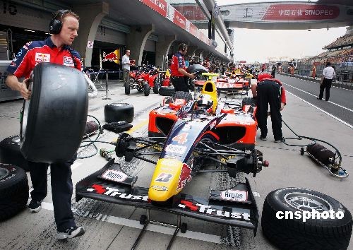 10月17日上午,2008世界一級方程式錦標賽第17站中國站的比賽在上海國際賽車場開始進行第一次自由練習(xí)賽。目前在車手積分榜上領(lǐng)跑的邁凱倫車隊英國籍車手漢密爾頓有希望在此奪下個人首個總冠軍。中新社發(fā) 任晨鳴 攝