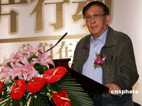 圖為今年6月11日,86歲高齡的導(dǎo)演大師謝晉“出山”,在上海參加《2008分之1》公益短片啟動(dòng)行動(dòng)。中新社發(fā) 潘索菲 攝
