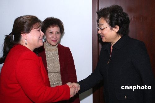 10月20日,由國務院僑務辦公室和中國海外交流協(xié)會主辦的首屆國際禮儀培訓班在北京開課。國務院僑辦主任李海峰歡迎并會見授課講師、美國前政府白宮高級禮賓官羅拉·埃福德。中新社發(fā) 廖文靜 攝