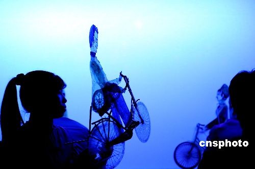 10月20日,北京老舍茶館內(nèi)表演的皮影戲受到中外來(lái)賓的喜愛(ài)。當(dāng)日,文化部授予老舍茶館“國(guó)家文化產(chǎn)業(yè)示范基地”在店內(nèi)揭牌。中新社發(fā) 廖攀 攝