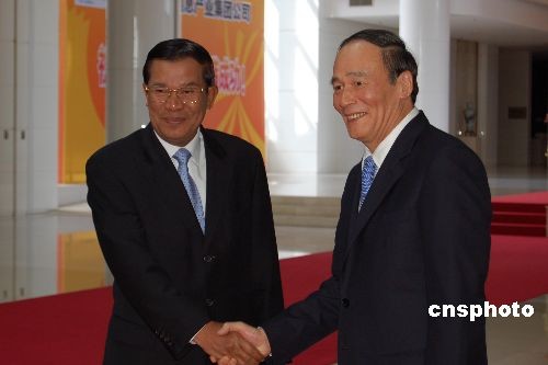 中國(guó)國(guó)務(wù)院副總理王岐山在廣西南寧會(huì)見了柬埔寨首相洪森一行。