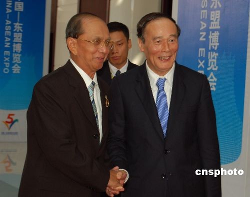 中國(guó)國(guó)務(wù)院副總理王岐山在廣西南寧會(huì)見了緬甸總理登盛一行。