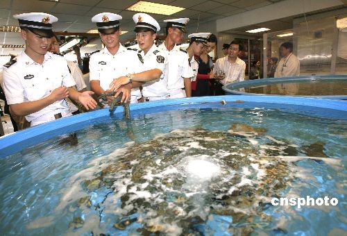 圖為官兵們在科大海岸海洋實驗室參觀。