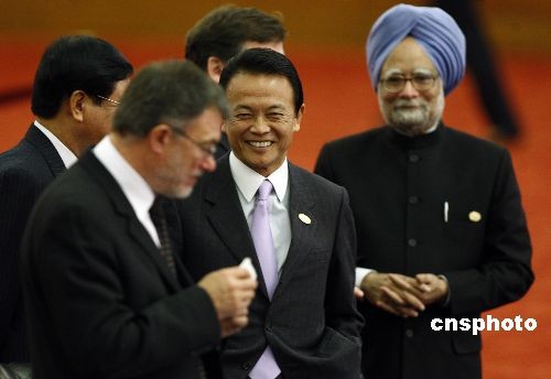 日本首相麻生太郎出席會議。中新社發(fā) 盛佳鵬 攝