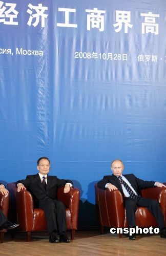 溫家寶與普京共同出席中俄經濟工商界高峰論壇。中新社發(fā) 田冰 攝