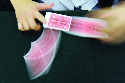 反賭專家演示撲克牌發(fā)牌過程中控制牌的技巧。 秦樓 攝