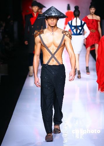 2008年10月30日,模特在2008上海時裝周國際品牌發(fā)布會上表演。本季設(shè)計師最新秋冬作品靈感來自于中國象棋。中新社發(fā) 睿瀛 攝