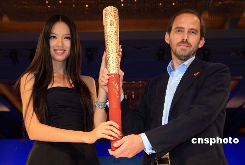 11月3日晚,一場(chǎng)預(yù)防性病艾滋病慈善拍賣晚會(huì)在上海舉行,中國(guó)“小巨人”姚明簽名的北京奧運(yùn)火炬,經(jīng)過(guò)激烈競(jìng)拍,以10萬(wàn)元人民幣被一位外籍愛(ài)心人士拍得,捐贈(zèng)給中國(guó)預(yù)防性病艾滋病基金會(huì),圖為2007年“世界小姐”張梓琳親手向愛(ài)心人士呈上姚明簽名的“奧運(yùn)火炬”。