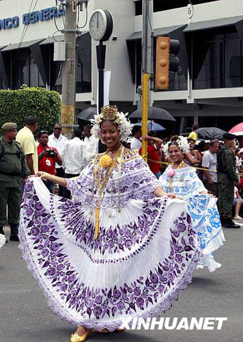 11月3日,在巴拿馬首都巴拿馬城,身著傳統(tǒng)服裝的民眾參加國(guó)慶節(jié)慶祝游行。當(dāng)天,巴拿馬舉行盛大游行慶祝獨(dú)立105周年。