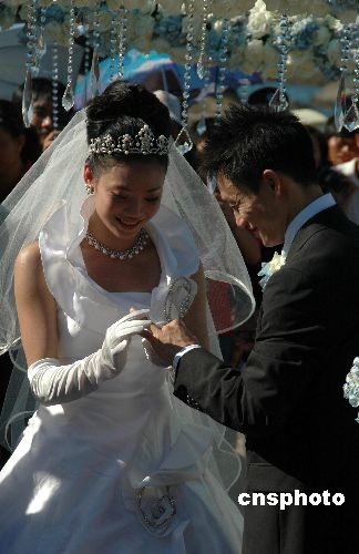 圖:楊威楊云互為對(duì)方佩戴新婚戒指