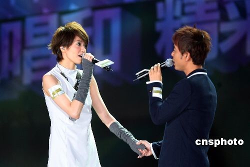 梁詠琪、李克勤在慈善音樂會(huì)上深情對唱。