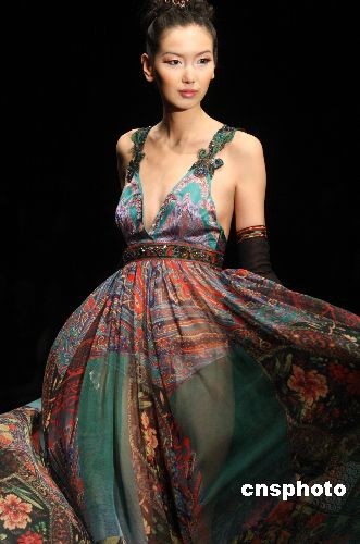 11月9日晚,在北京舉行的中國(guó)國(guó)際時(shí)裝周2009春夏系列發(fā)布上,模特展示鄧皓“似水女人”時(shí)裝作品。中新社發(fā) 錢(qián)興強(qiáng) 攝