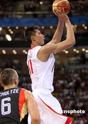 北京奧運(yùn)會男子籃球小組賽第四輪比賽中的易建聯(lián)。中新社發(fā) 任晨鳴 攝