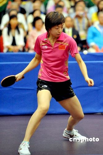 圖為奪得奧運(yùn)女單金牌的張怡寧在香港表演球技。中新社發(fā) 鄧慶樂