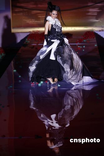 11月11日,一場(chǎng)設(shè)計(jì)主題是“天色”的高級(jí)時(shí)裝發(fā)布會(huì)于2008中國(guó)國(guó)際時(shí)裝周(2009春夏系列發(fā)布)期間在北京飯店舉行,強(qiáng)烈的視覺(jué)沖擊和舞臺(tái)效果為觀眾帶來(lái)一場(chǎng)視覺(jué)盛宴。中新社發(fā) 盛佳鵬 攝
