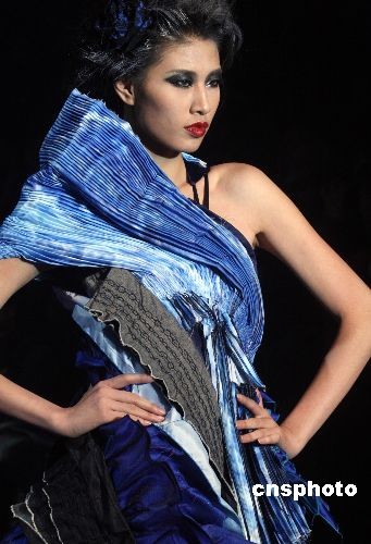 11月11日晚,在北京舉行的中國國際時裝周2009春夏系列發(fā)布上,推出了一場名為長江的2009春夏高級時裝發(fā)布會。作者以長江景象、長江技藝、長江情懷為創(chuàng)意主題,以時裝創(chuàng)作藝術(shù)手法表現(xiàn)中華民族豐富絢麗的文化。圖為模特展示2009春夏《長江系列》高級時裝發(fā)布新款。中新社發(fā) 錢興強 攝
