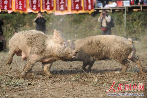 圖:貴州苗族舉行斗牛斗豬賽歡度苗年(2)