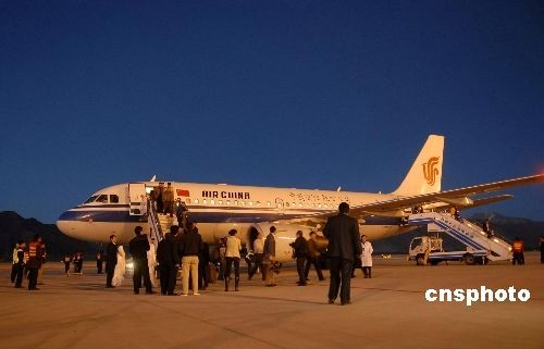 11月12日19時(shí)22分,國航成都至拉薩的夜航CA4406航班平穩(wěn)地降落在拉薩貢嘎機(jī)場(chǎng),并于當(dāng)日21時(shí)42分將拉薩至成都的102名旅客順利送達(dá)成都雙流機(jī)場(chǎng),這標(biāo)志著拉薩夜航航班首航成功,此舉也結(jié)束了43年來拉薩貢嘎機(jī)場(chǎng)無夜航的歷史。 中新社發(fā) 龍昊 攝