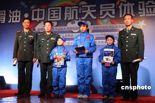 11月14日,“長城潤滑油·中國航天員體驗營活動”在北京航天城拉開帷幕。體驗營是由中國石化長城潤滑油與《航天員》雜志社共同主辦的大型體驗式航天科普公益活動,從全國各地數(shù)千名報名者中遴選出來的數(shù)十位幸運營員,14日至16日將在北京航天城度過為期3天的航天體驗之旅。中國航天員楊利偉、費俊龍、聶海勝在開營儀式上與小營員互贈禮物。中新社發(fā) 盛佳鵬 攝