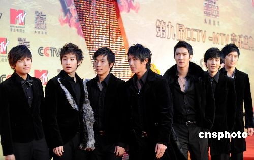 十一月十六日晚,第九屆CCTV-MTV音樂盛典在北京舉行,帥氣的Super Junior-M組合踏上紅地毯。中新社發(fā) 廖攀 攝