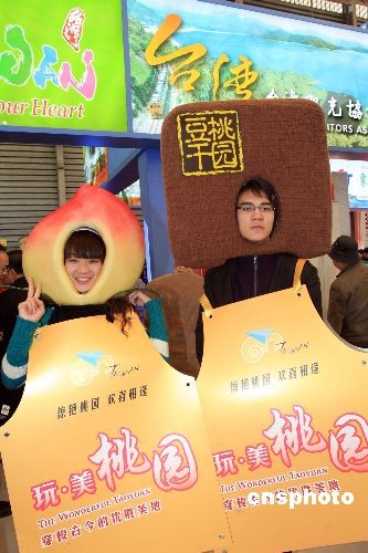 圖:臺灣桃園交易會上推廣"豆干""水蜜桃"