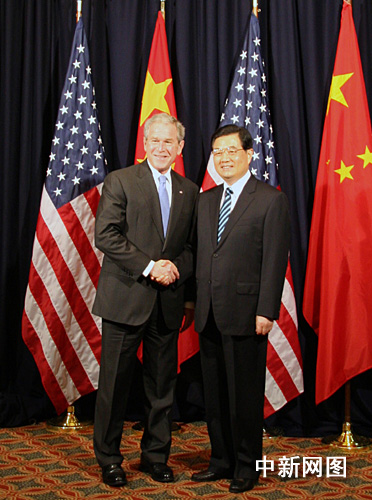 圖:胡錦濤同美國總統(tǒng)布什舉行會(huì)晤