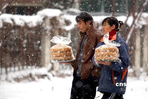 12月2日,新疆烏魯木齊市兩位維吾爾族市民手捧為即將到來的古爾邦節(jié)特意購買的馓子,匆忙回家。受西西伯利亞南下的強(qiáng)冷空氣影響,從12月1日白天開始到2日夜間,新疆主要以降溫大風(fēng)天氣為主,同時(shí)新疆北部地區(qū)將有較明顯的降雪。中新社發(fā) 劉新 攝