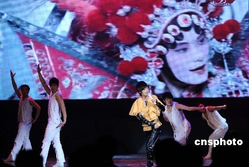 12月2日晚,陳凱歌執(zhí)導(dǎo)的電影《梅蘭芳》在北京中影懷柔影視基地舉行首映禮,李宇春在現(xiàn)場唱起經(jīng)過改編的京劇歌曲。中新社發(fā) 廖攀 攝