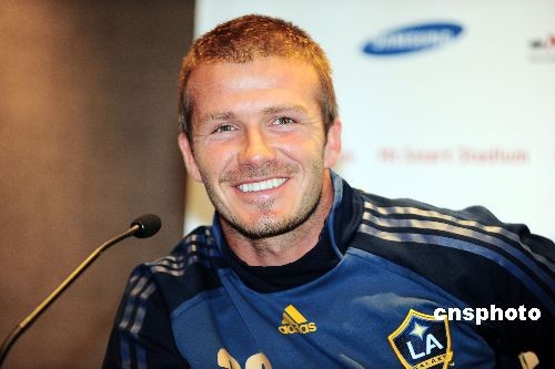 新西蘭時間12月4日上午10時,在奧克蘭Westin酒店舉行了“洛杉磯銀河隊奧克蘭之旅”記者會。貝克漢姆及銀河隊選手Eddie Lewis、主教練Bruce Arena,太平洋明星隊代表等出席了記者會。在記者會上,銀河隊與太平洋明星隊代表交換了隊服。 中新社發(fā) 胡旭君 攝