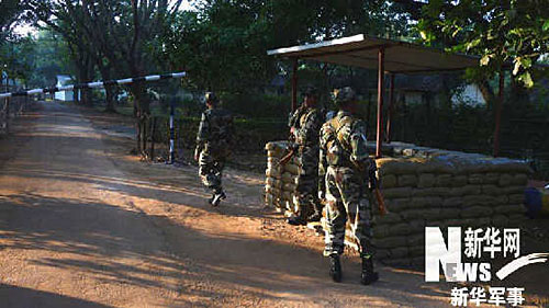 印軍營(yíng)房的哨位由沙包、三合板和柱子簡(jiǎn)單搭建而成。新華軍事記者 李剛 攝