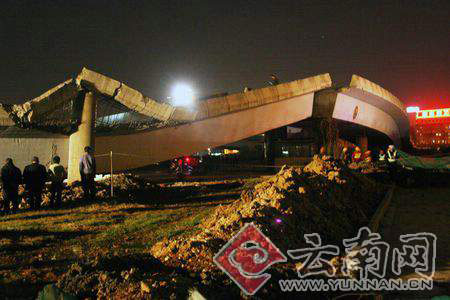 昨日19時30分許,昆明小莊立交橋下昆曲匝道橋在拆除時,發(fā)生橋面坍塌。經(jīng)初步調(diào)查,事故造成2人死亡、4人受傷,受傷人員被及時送醫(yī)院救治。事故發(fā)生后,昆明市張祖林市長、杜敏副市長、陳勇副市長,省交通廳吳衛(wèi)平副廳長隨即趕到現(xiàn)場組織指揮處置工作,成立事故處置現(xiàn)場指揮部,昆明市公安、衛(wèi)生、建設(shè)、安監(jiān)、交通等部門工作人員趕赴現(xiàn)場處置,立即啟動《昆明市突發(fā)公共事件總體應(yīng)急預(yù)案》及相關(guān)部門專項預(yù)案,調(diào)集昆明市建筑工程應(yīng)急救援隊到達現(xiàn)場,按有關(guān)規(guī)程開展現(xiàn)場搜尋、救援、清理、疏通、善后等工作。經(jīng)專家組現(xiàn)場初步勘查,小莊立交橋拆除中發(fā)生坍塌的主要原因?qū)偈┕挝贿`反操作規(guī)程,導(dǎo)致被拆除橋梁突然坍塌。目前,事故救援及善后等相關(guān)工作正有序進行。