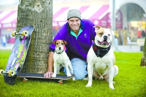 6歲的杰克拉塞爾犬“Auggie”和1歲的美國斗牛犬“Popeye”都是滑板高手。近日,它們在主人Omar Muller的帶領(lǐng)下在美國洛杉磯海灘大秀滑板技藝。