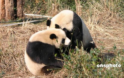 贈(zèng)臺(tái)大熊貓“團(tuán)團(tuán)”“圓圓”經(jīng)過(guò)長(zhǎng)期同居生活更顯恩愛(ài),經(jīng)歷了地震后感情也更加如膠似漆,誰(shuí)也離不開(kāi)誰(shuí)。圖為11日“小兩口”竊竊耳語(yǔ),大秀恩愛(ài)。中新社發(fā) 霍潺 攝