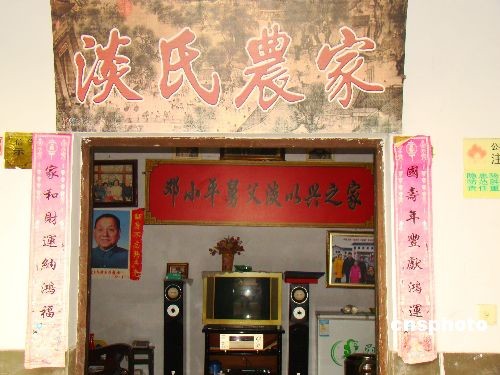 改革開放三十年來,中國改革開放總設(shè)計(jì)師鄧小平故里四川廣安牌坊村發(fā)生了巨大變化。牌坊村黨支部書記鄧治君說,目前牌坊村正在成為集教育、觀光、會議、休閑為一體的紅色旅游與現(xiàn)代農(nóng)業(yè)旅游基地。圖為鄧小平舅父談以興家開設(shè)的農(nóng)家樂,名為“淡氏農(nóng)家”。中新社發(fā) 王萌 攝