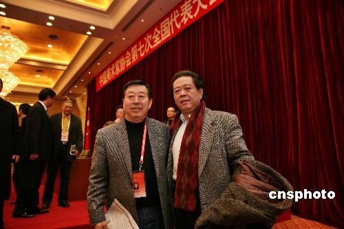 新當(dāng)選的中國美協(xié)主席劉大為(左)和新當(dāng)選的中國美協(xié)中國美協(xié)秘書長劉健。