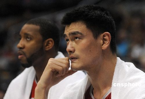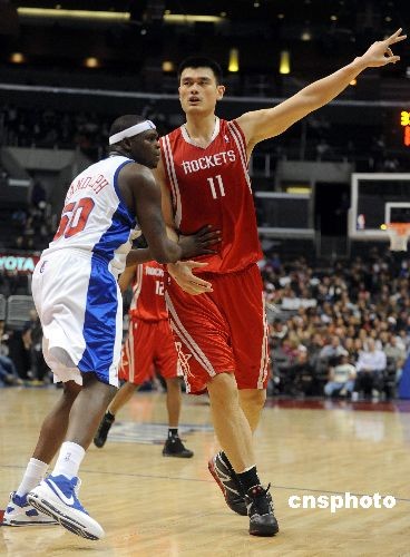 姚明在快船中鋒蘭多夫面前并沒有占到便宜。
