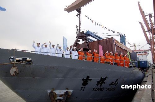 12月15日上午,閩臺海上貨運直航首航儀式在福州青洲港區(qū)隆重舉行,“吉祥山”號、“金海緣”號、“華航三號”、“興華輪”號4艘船舶將從該港區(qū)出發(fā)前往臺北、基隆、高雄3港。福建廈門港4艘、泉州港2艘船舶也同時出發(fā),直航臺灣。