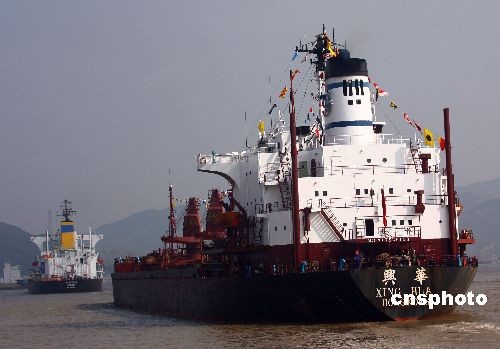由福州港開(kāi)出的共有4艘船舶分別為:華航3號(hào)、吉祥山號(hào)、金海緣號(hào)、興華號(hào)。中新社發(fā) 祝敏松 攝